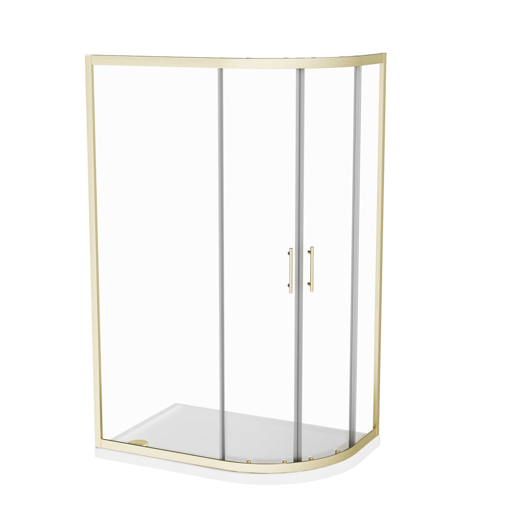 This quadrant shower enclosure in a brushed brass finish comes with 6mm tempered glass which is specifically easy-clean-glass. The shower doors with a smooth, sliding mechanism and brushed brass shower door handles gives this shower an elegant feel. It’s not a problem if your walls are slightly positioned at the wrong angle as this enclosure adjusts by 20mm. The shower enclosure also comes with a low profile shower tray and a removable waste. The brushed brass finish will compliment contrasting light or dark coloured interiors and gives a modern look to the corner of your bath or shower room. Matching, taps and mirrors are also available.