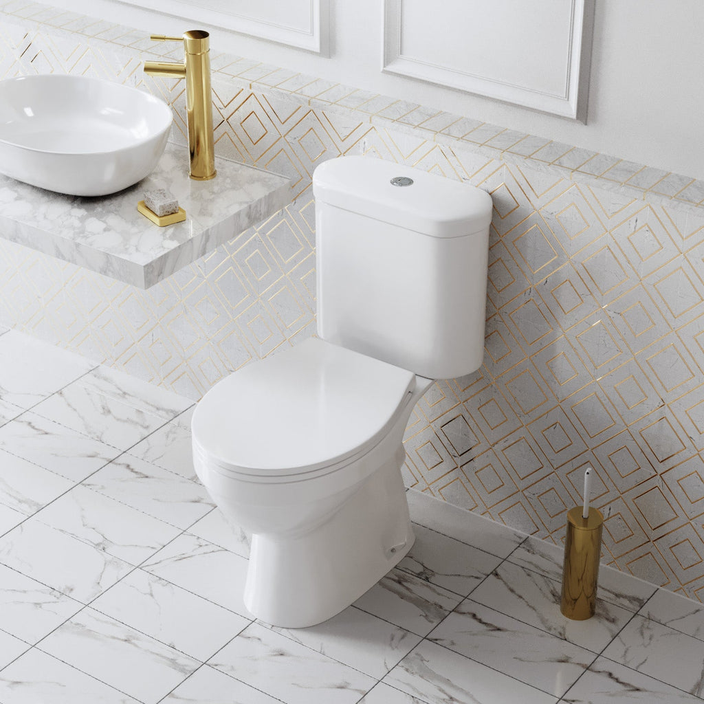 The Close Coupled Toilet boasts a sleek, ultra-modern design. With an extended height of 450mm, it offers a practical solution for taller individuals and those with mobility challenges. The unit features concealed fixings, providing a clean, minimalist aesthetic that complements any contemporary bathroom. Crafted from high-quality ceramic, it has a durable glossy white finish and includes a cistern with dual flush capability, along with all necessary floor fittings.