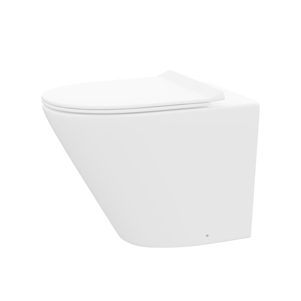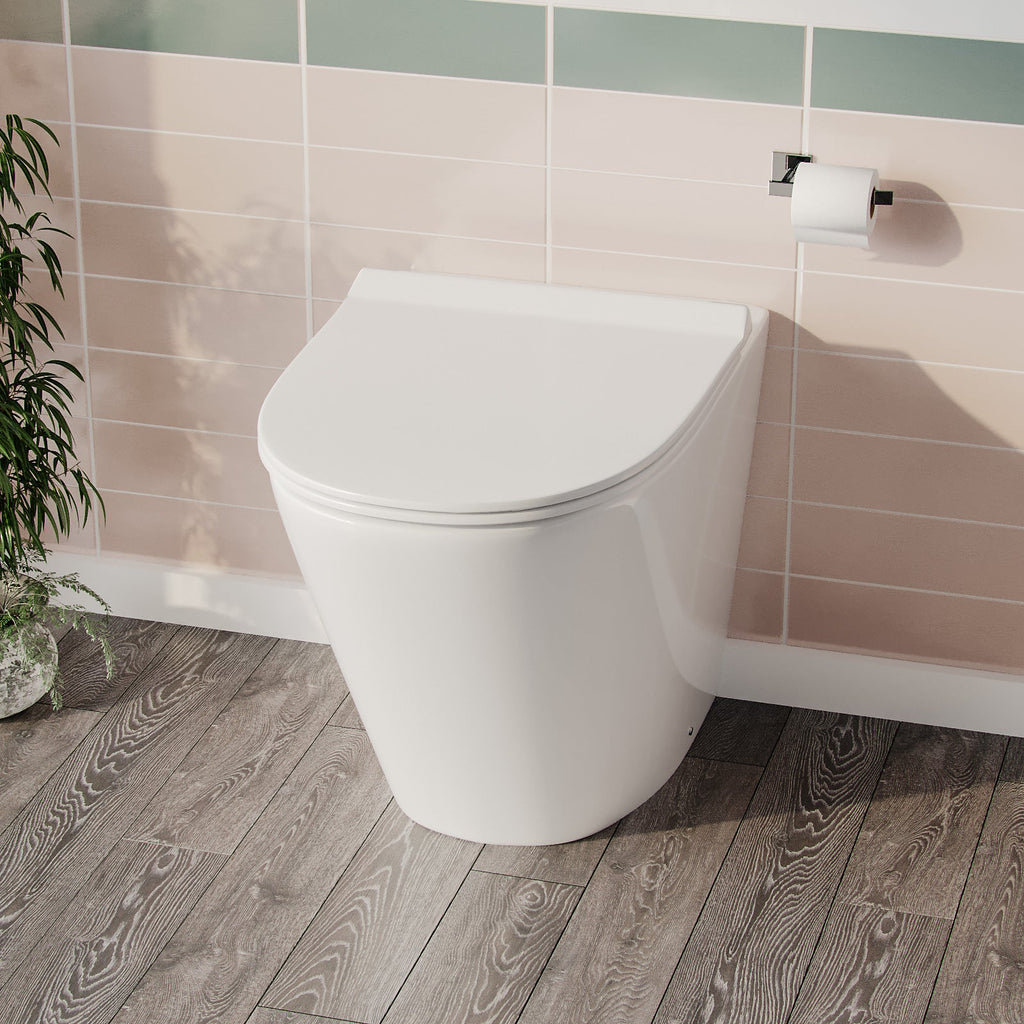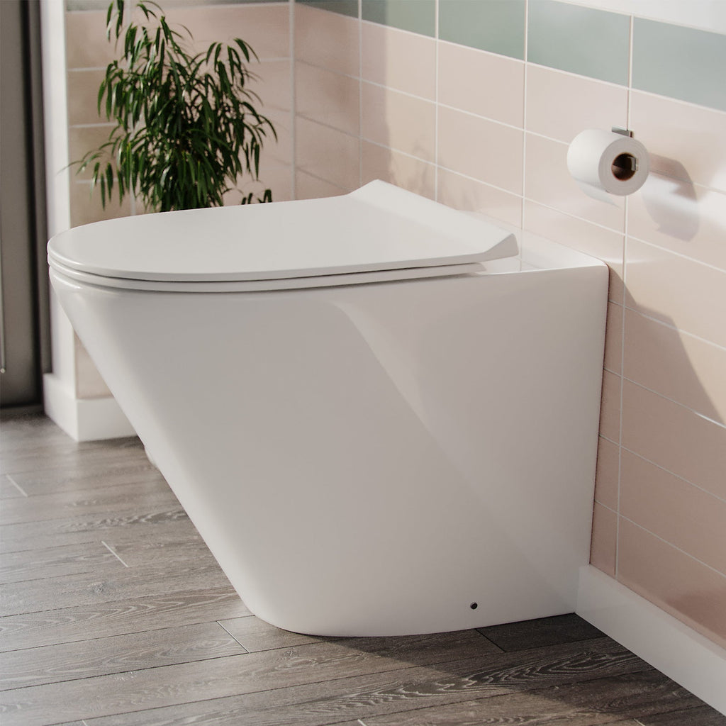 This stunning Rimless Round Back To Wall Pan toilet pan and seat is an ultra-modern designer shape. Mixing with subtle curves and clear cut direct lines.