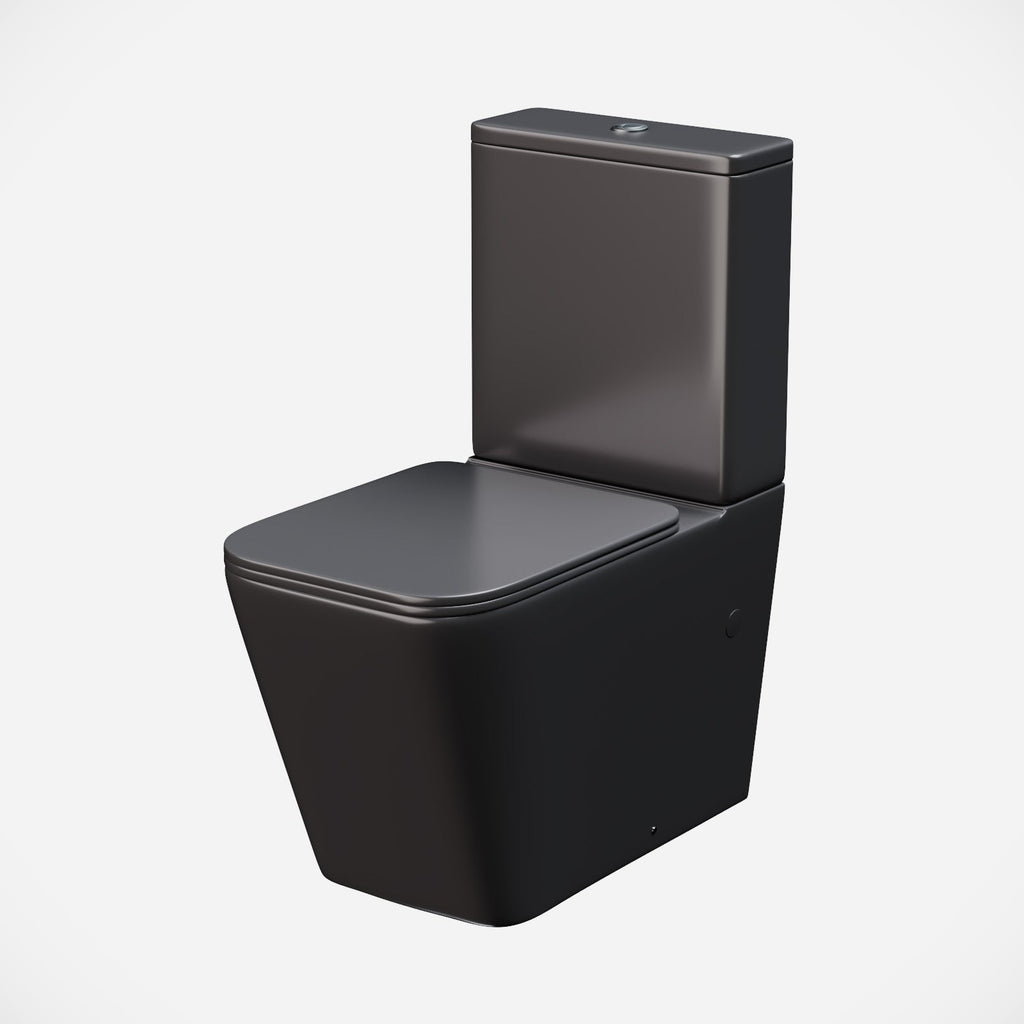 The Square Rimless Close Coupled Toilet Matte Black features an innovative design incorporating a rimless pan which halts bacteria build up and makes cleaning a breeze. Expertly crafted using only the finest ceramic and finished in matte black, this superb piece would be the perfect companion for any modern minimalist aesthetic. Also, the soft close toilet seat and cover which makes it safe for people of all ages to use and helps prevent fingers from getting trapped. Overall, this toilet is a high-quality, functional, and stylish addition to any modern bathroom.