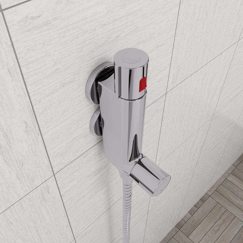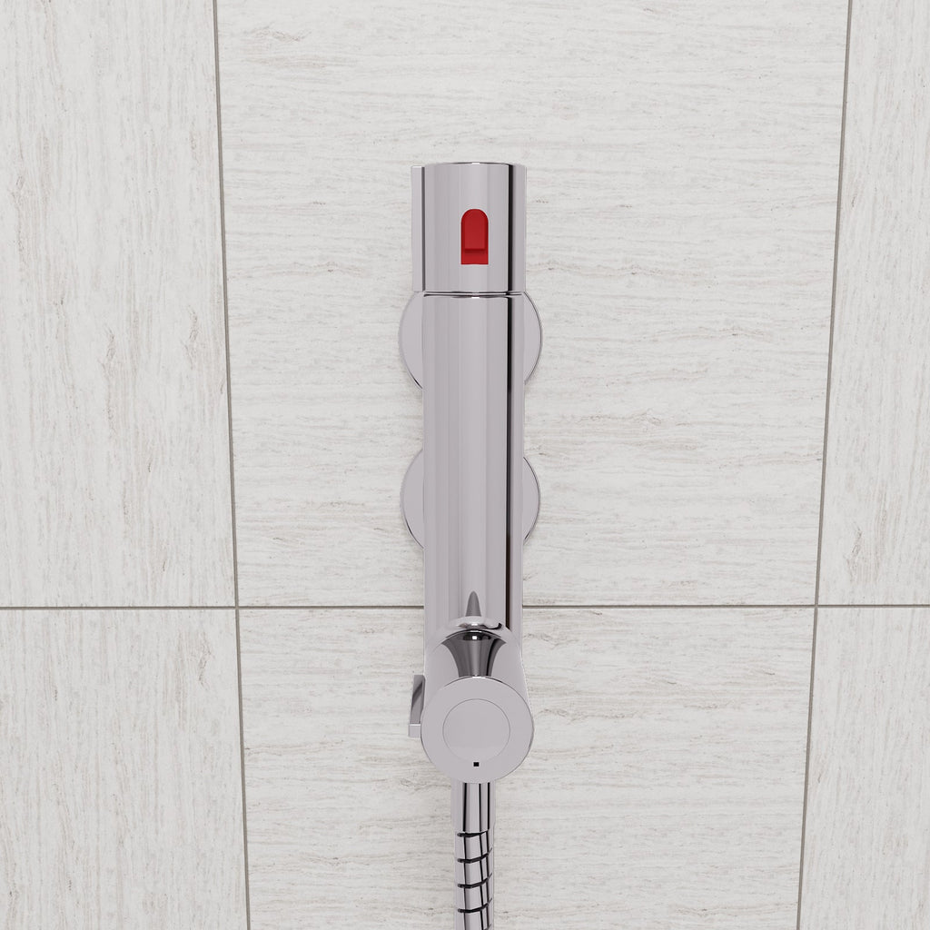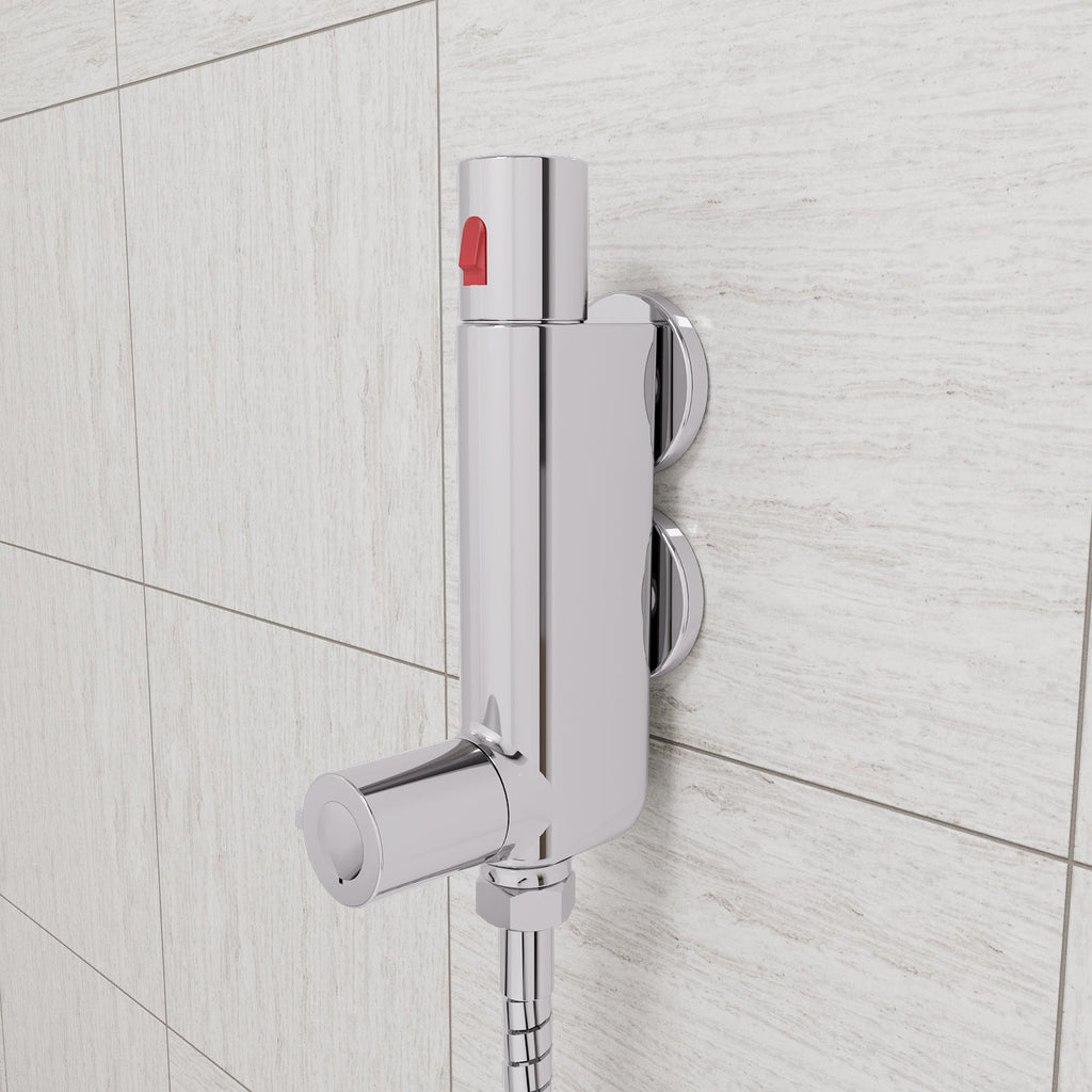 As with all thermostatic shower mixer taps, it is essential that the water is not left to freeze whilst inside the tap. Frozen water expands and can damage the pipework and/or the internal thermostatic valve. Because this thermostatic mixer tap is intended for use in holiday homes and caravans, it has been designed so that it can be easily disconnected.