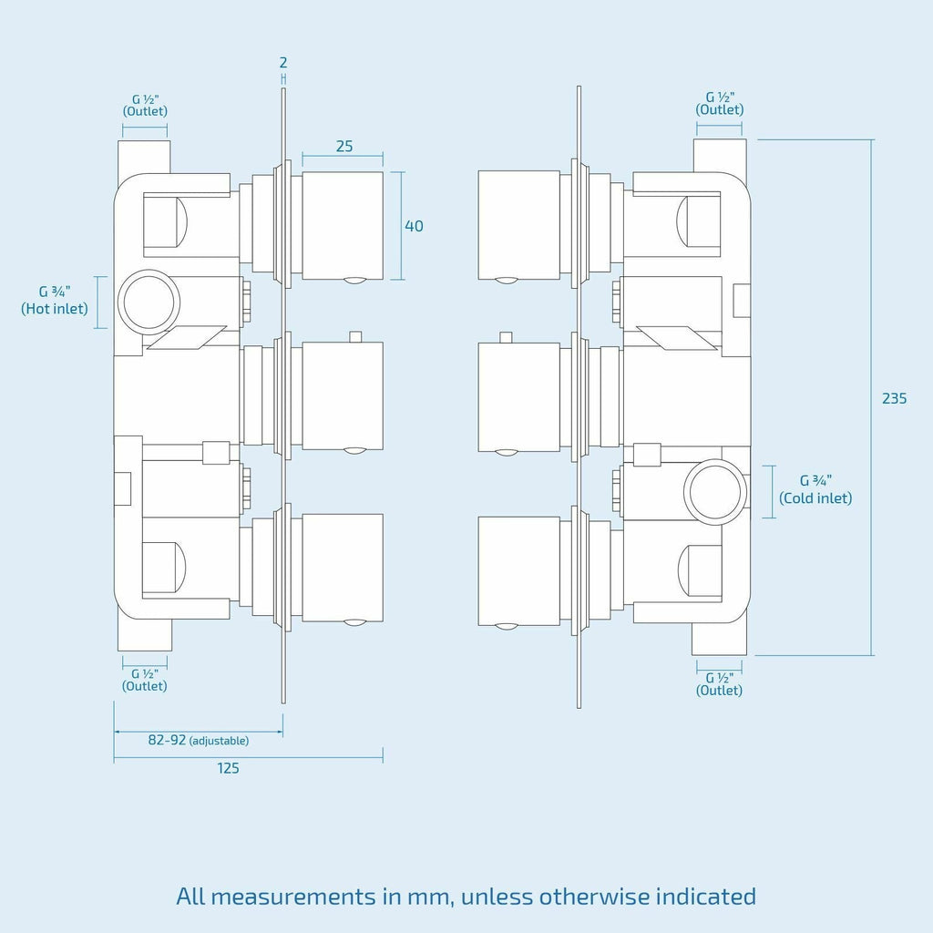 Featuring square dials with short levers for fingertip control, the mixer valve supplies water to 2 outlet diverters and is finished in stunning chrome, leaving a silky-feel surface and a highly reflective mirror-like sheen, making your taps look new for longer.
