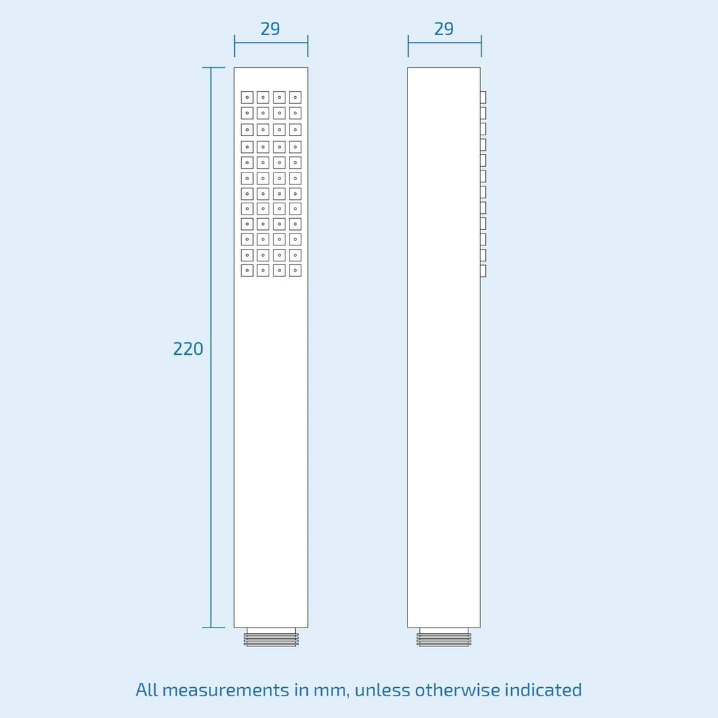 - Overhead shower dimensions - 200mm x 200mm x 8mm
