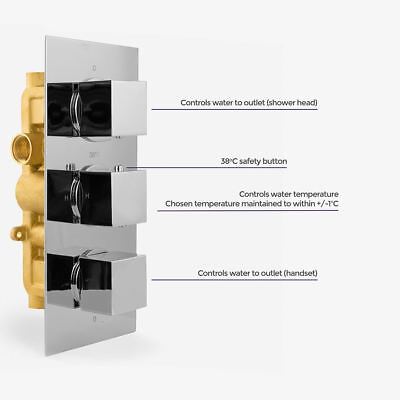 This Modern Design Concealed Thermostatic Valve will compliment any modern bathroom suite, offers thermostatic showering via two easy-to-operate controls for temperature and flow. Supplied with a 200mm fixed shower head with swivel joint and arm and 6 body jets.