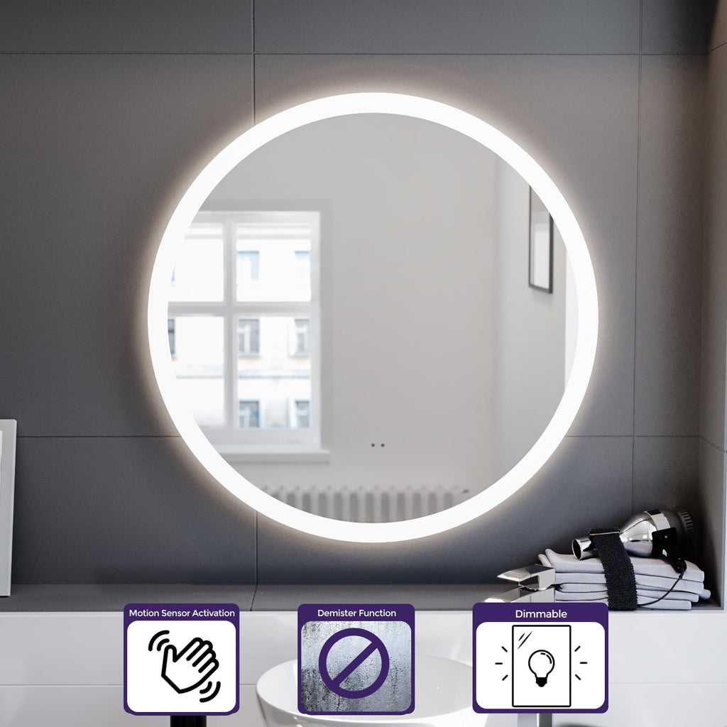 A modern and stylish wall mounted LED mirror that adds an appealing visual experience to your bathroom.