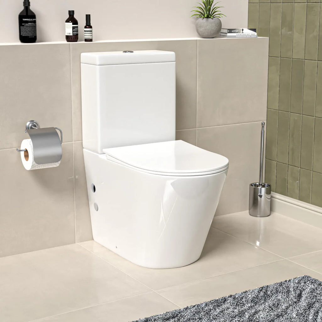 This toilet ensures a clean, minimalist look that will perfectly match any modern bathroom. It is made from high-quality ceramic, with a hard-wearing glossy white finish, it comes complete with a cistern featuring dual flush capability. Please note: Bidet valve is not included