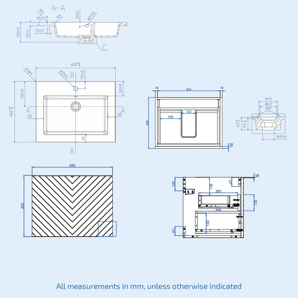 The Wall Hung Drawers Basin Vanity with Handle has an aesthetic symmetry textured design making the vanity unit complement to any modern bathroom. This vanity unit provides ample space of storage with two drawers to store your bathroom essentials. The drawers feature a brushed finishing handle for easy access. The soft-close mechanism ensures gentle and quiet use without slamming. This vanity unit is a wall-mounted design. It gives you an unclutter look with freeing up floor space. It is made from MDF with a water-resistant coating, topped with a durable and easy to clean basin sink. This vanity unit is an excellent option that will bring a touch of luxury style and functionality to your bathroom. It's time to upgrade your space!