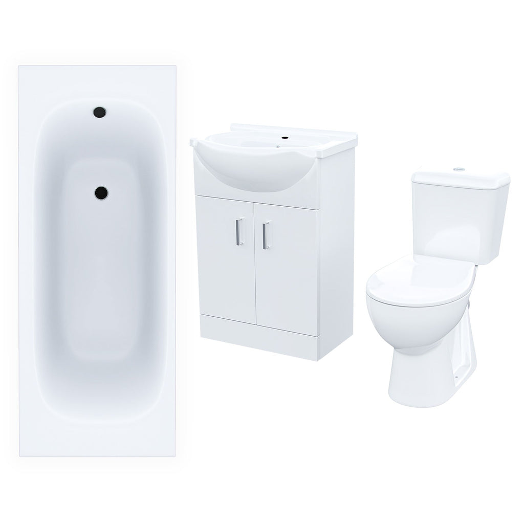 This beautiful complete 3 piece bathroom suit comes with a modern basin vanity unit, toilet and bath tub for those long soaks, create a stylish, modern family bathroom. This 3 piece bundle contains a close coupled toilet including Soft Close Seat, Freestanding Basin Vanity Unit, Straight 1700mm bath. Every element has been cleverly combined to create a flow throughout your bathroom suite.