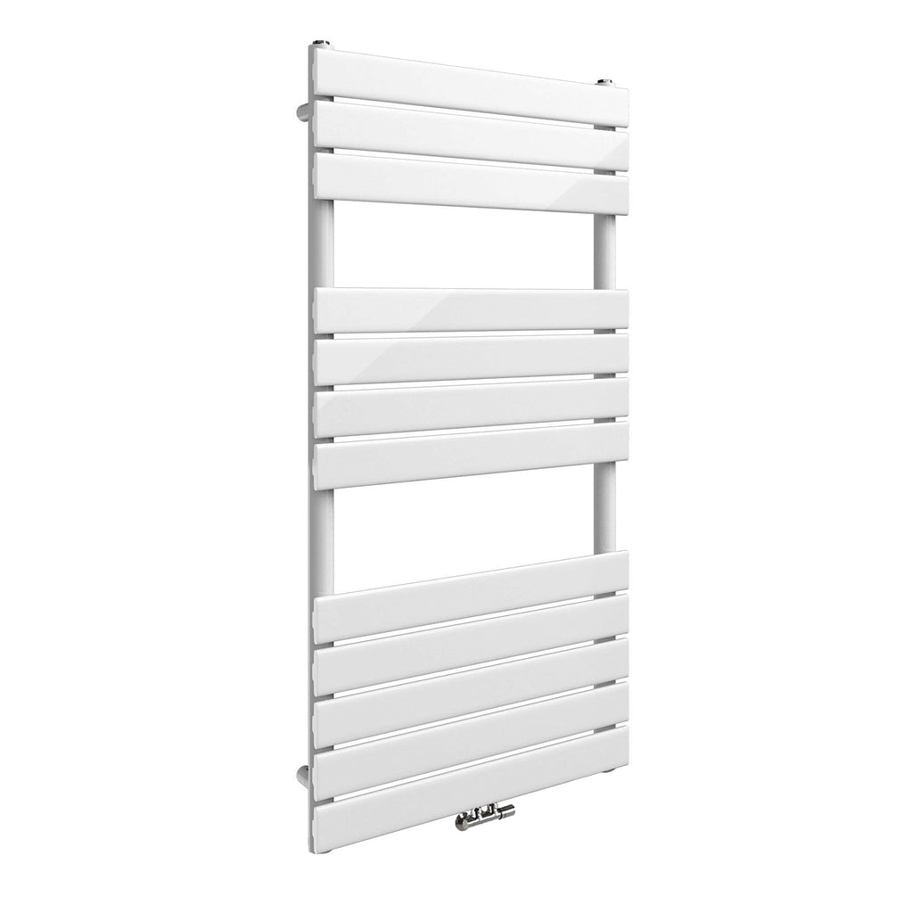 The 1200 x 600mm White Single Flat Tube Towel Radiator is a stylish vertical radiator designed for modern bathrooms. With a sleek flat panel design and powerful heat output, it efficiently warms your space and dries towels—even in colder months. This tall radiator supports central connection and is compatible with both H Block and standard valve setups, making it a versatile and elegant addition to any bathroom radiator layout.