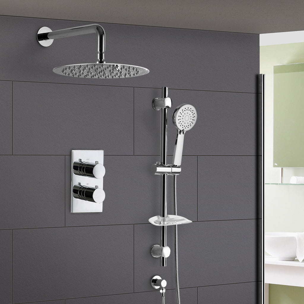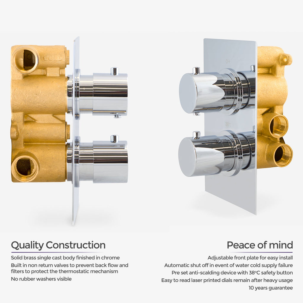Constructed from solid brass, with modern ceramic disc technology, our stylish concealed thermostatic shower mixer valve is perfect for creating a new minimalist look to your bathroom.