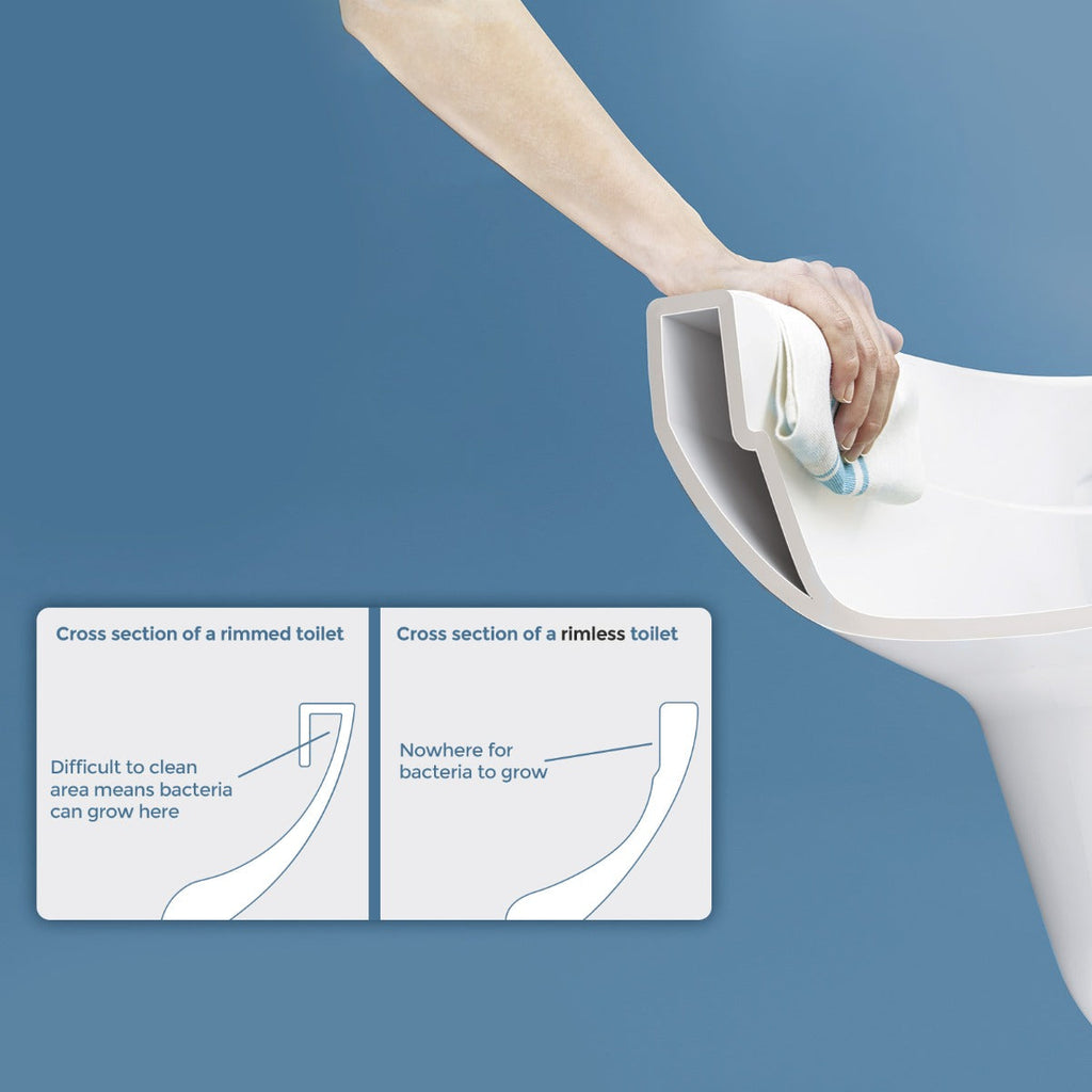 It features a ceramic rimless pan, which not results in better hygiene, but also saves water, while a slim soft-close seat means it's safe for kids to use - the gentle closing mechanism ensures fingers won't get trapped.