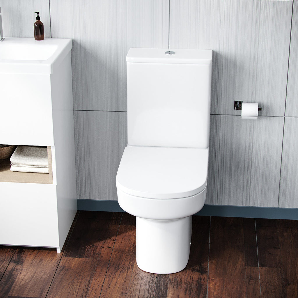 An ultra-contemporary White Rimless Close Coupled WC Toilet with Open Back Pan that comes with Cistern & D-Shape Soft Close Seat. It offers a modern design with clean edges, making it a great addition to your modern bathroom. The toilet features a soft-close, quick-release toilet seat, to prevent damage. An excellent size that is flawless for any regular or small bathroom and cloakroom.