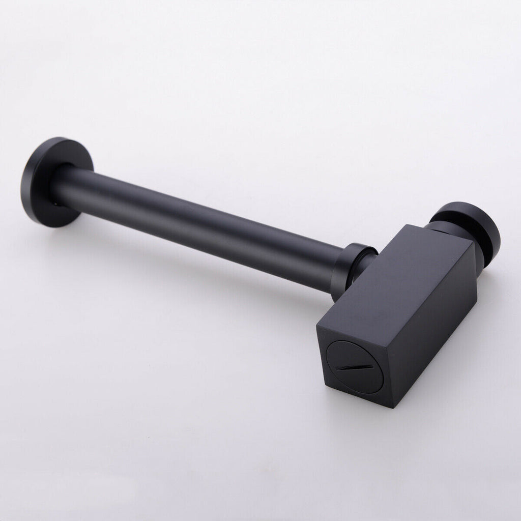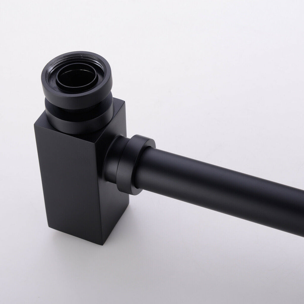 Square Bottle Trap & Outlet Pipe Bathroom Basin Sink Brass Matte Black