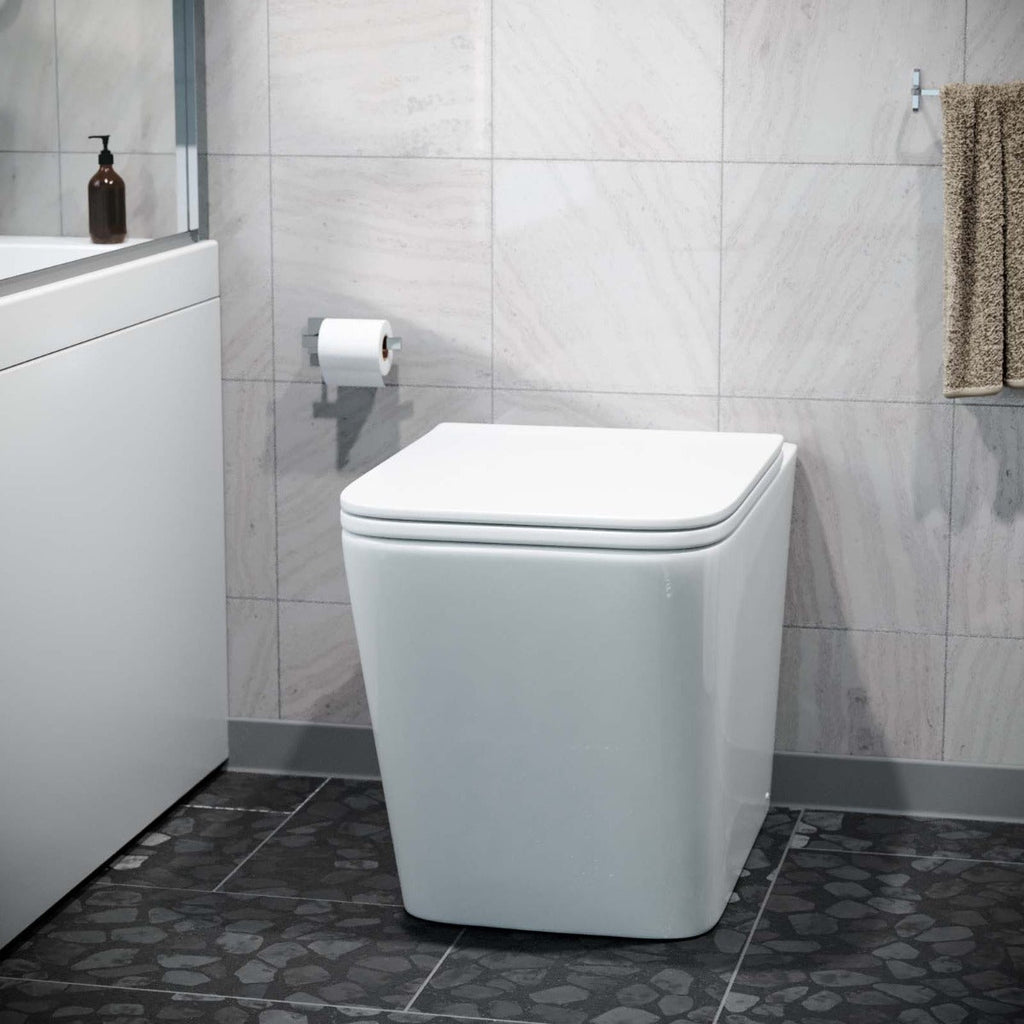 The Inton rimless back to wall toilet pan and seat is an ultra-modern designer square shape.
