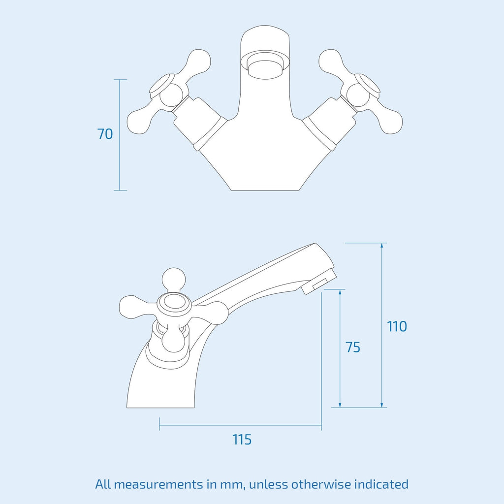 - Basin Taps: 1 x hot tap, 1 x cold tap