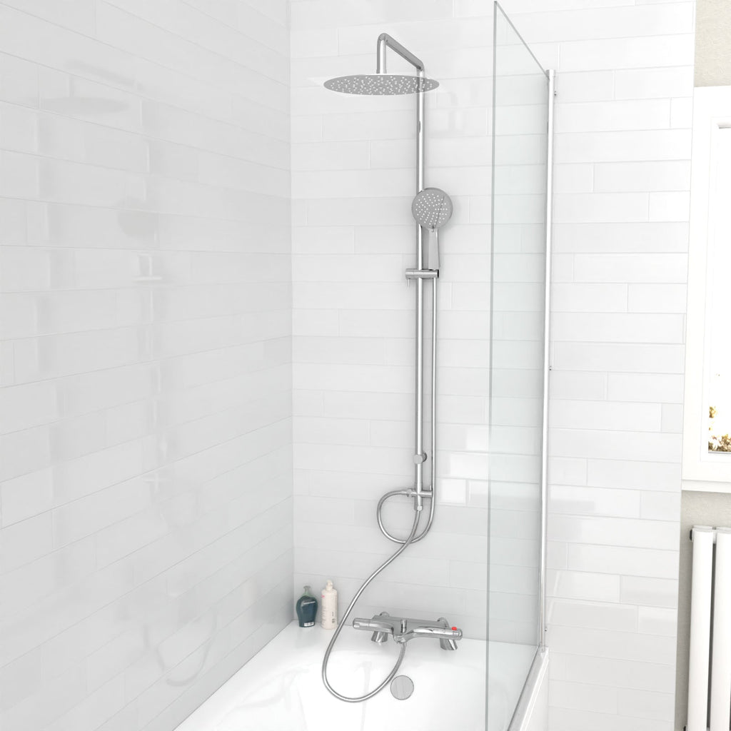 The modern exposed multi function riser slide shower rail kit will add the perfect touch to your bathroom. A solid brass round shower head, bath mixer tap and handset pack in a sleek design. An excellent cost effective showering solution. This contemporary thermostatic bath shower mixer is suitable for shower and bath areas. The easy to use thermostatic mixer tap comes with an on/off function on the left and the temperature control on the right. The pull-up diverter knob controls the transition between the bath filler tap and shower. There is an override stop button set at 38 degrees Celsius which provides comfort and safety during a shower.
