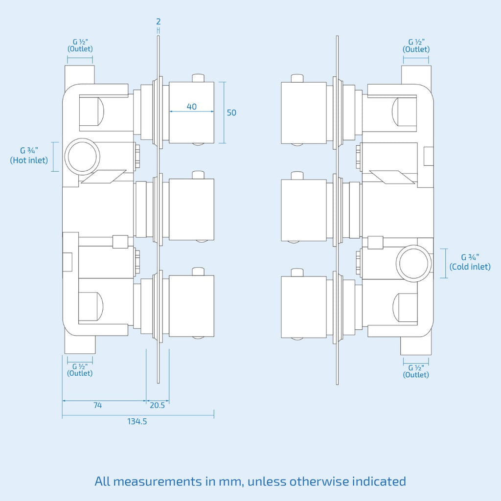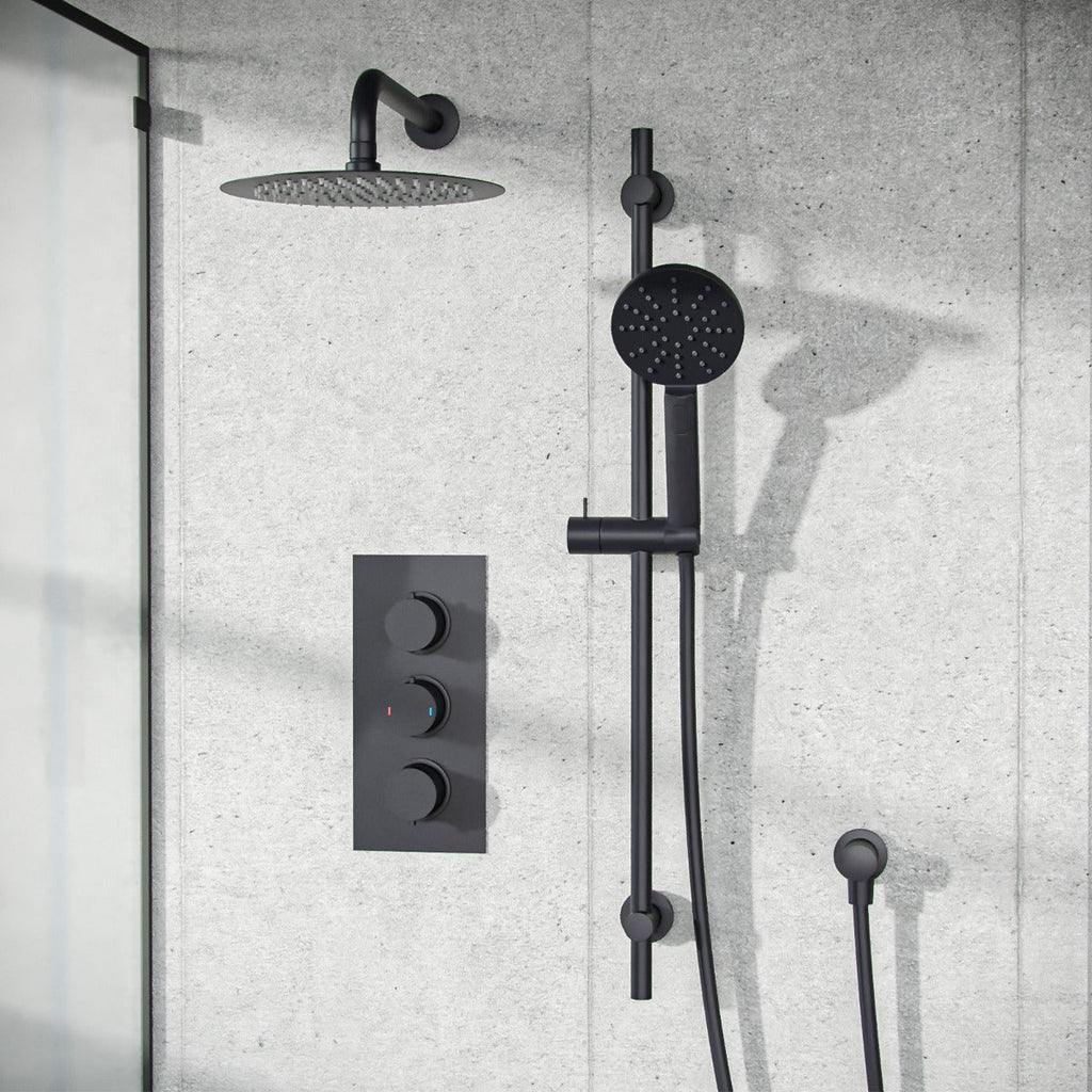 - The thermostatic showering can be accessed via the 3 dials 2-way easy-to-operate dial controls - separate controls for temperature and flow; giving you full temperature control.