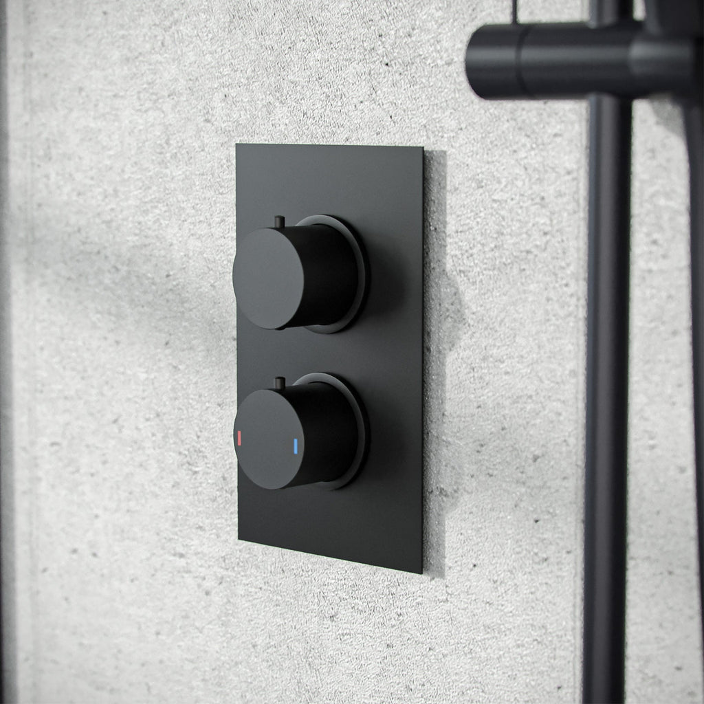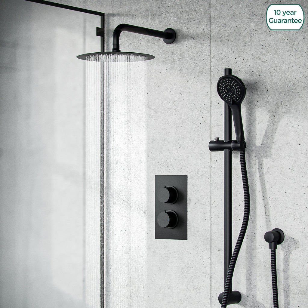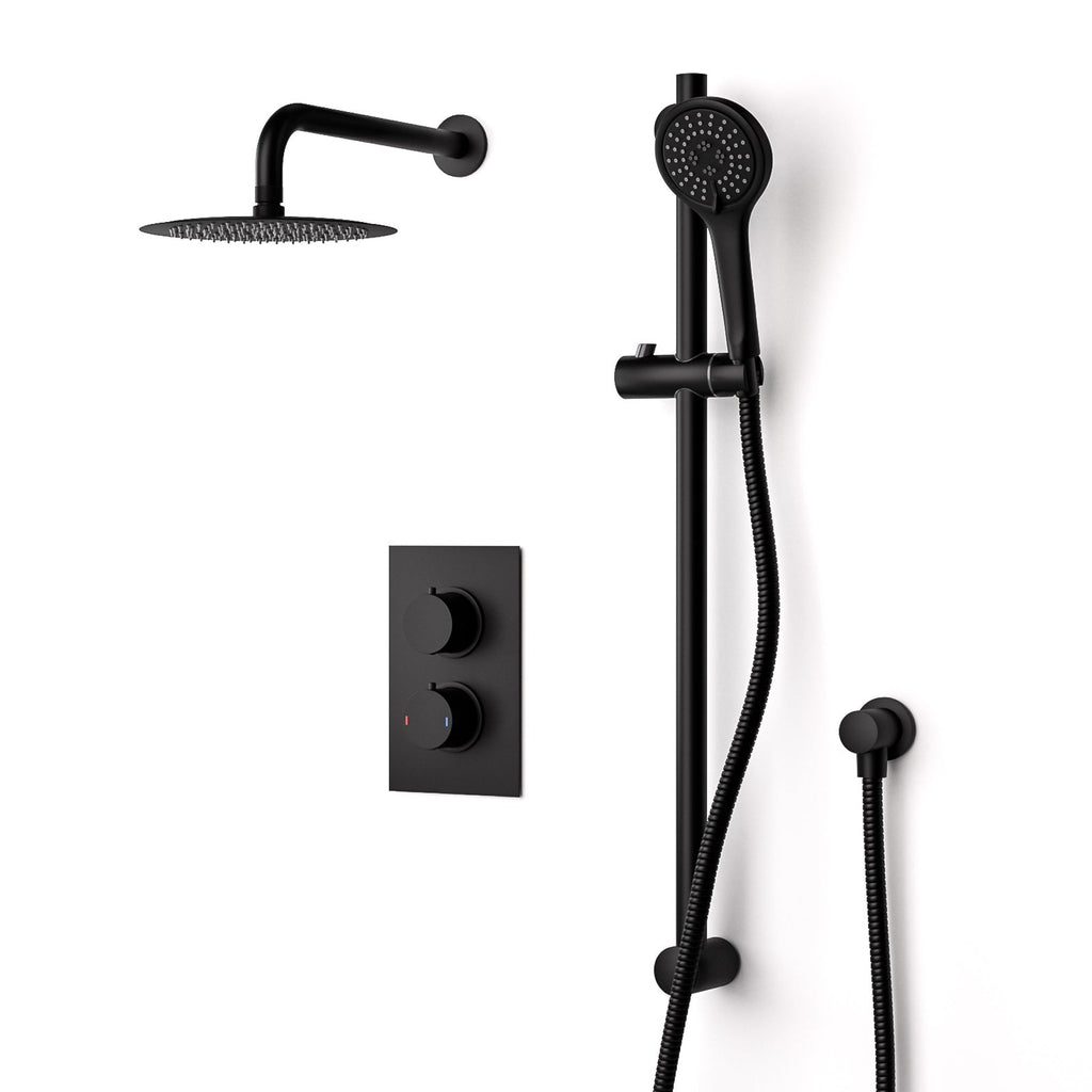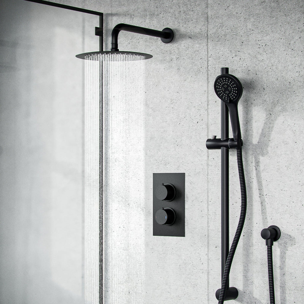 This stunning matt black slim round concealed thermostatic mixer valve shower set is a perfect addition to any modern designer bathroom.