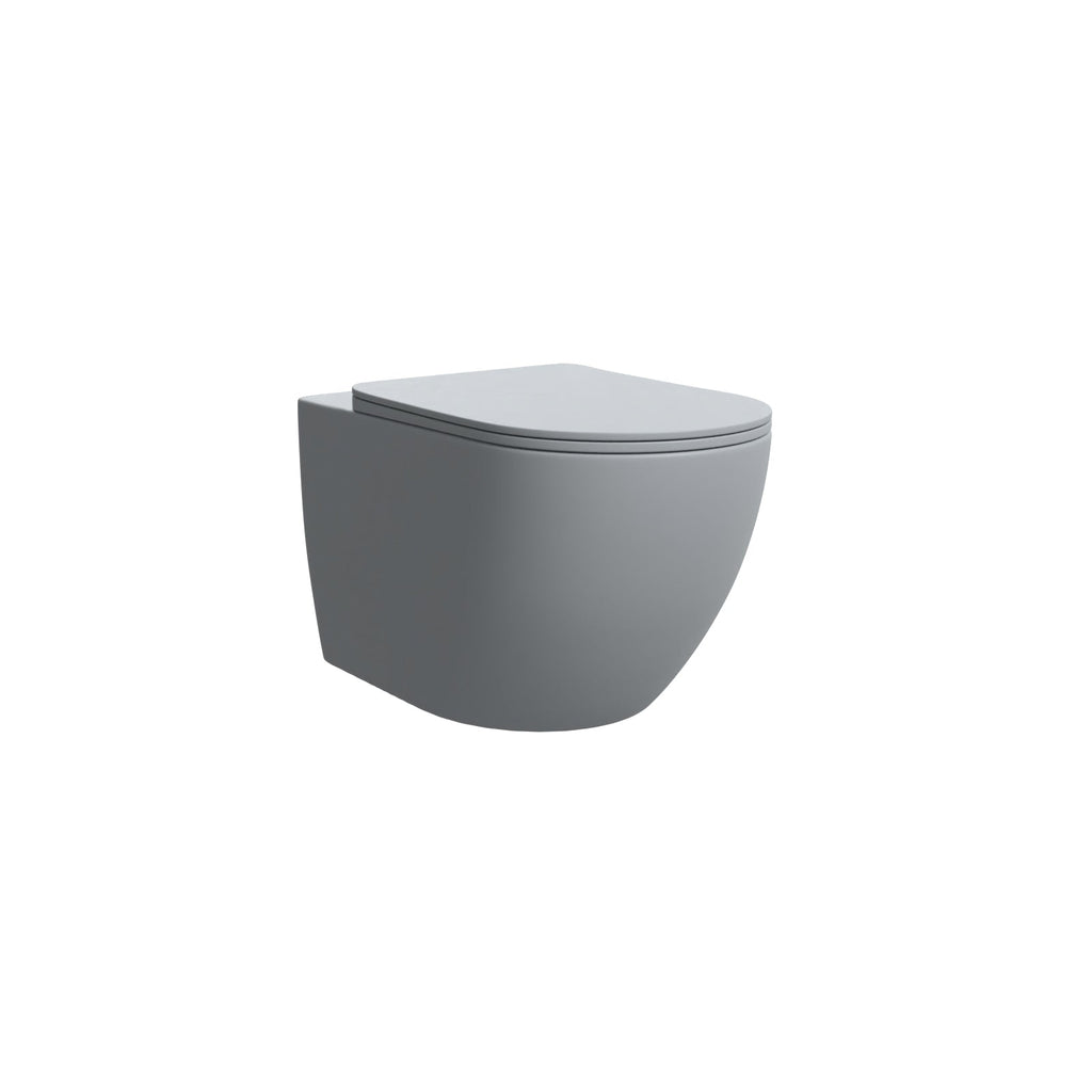 This sleek Rimless Tornado Flush wall-hung toilet features a rimless design that enhances its clean, minimalist look, perfectly complementing any modern bathroom. Equipped with cutting-edge Tornado Flush technology, it delivers a powerful, efficient, and quiet flush through dual-nozzle water flow, creating a cyclonic rinsing action. This innovative design not only effectively prevents bacterial buildup but also improves hygiene, reduces water usage, and minimizes cleaning effort. Crafted from durable ceramic with a hard-wearing, matte grey finish, this toilet is built for durability and easy maintenance. Also, the soft close toilet seat and cover which makes it safe for people of all ages to use and helps prevent fingers from getting trapped.