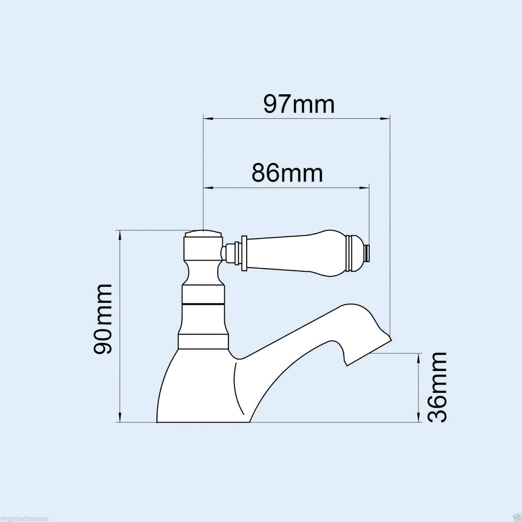These traditional bathroom taps add a classic but modern touch to your bathroom. The traditional set of imperior bathroom taps features ceramic lever handles, robust brass construction, a mirror-shine chrome finish, and a ¼ turn cartridge.