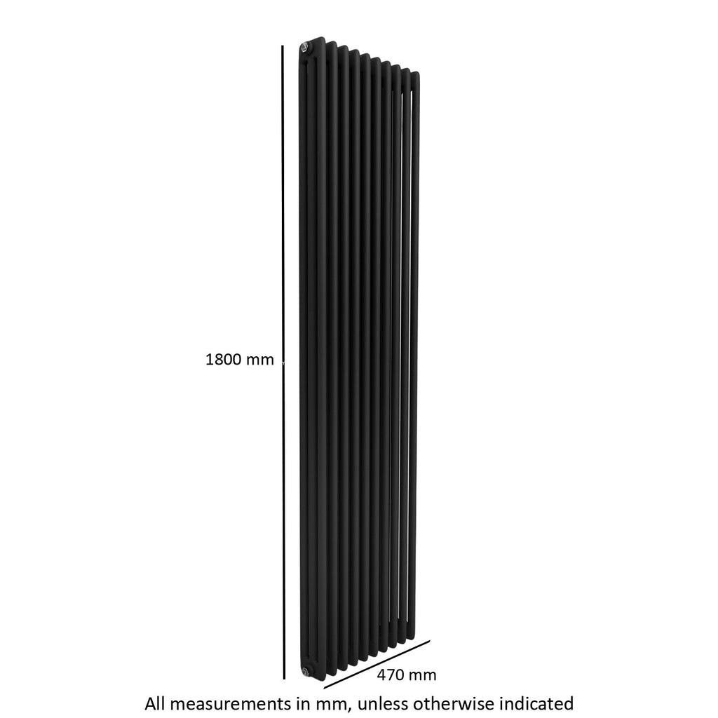 The 1800 x 470mm Matte Black Vertical Triple Column Traditional Radiator from Nes Home delivers timeless style and powerful performance. Its tall triple column design and bold matte black finish offer high heat output to keep your home warm and comfortable—even on the coldest days. Built from durable materials and compatible with standard central heating systems, this radiator adds classic elegance to both period and modern interiors, making it a versatile and efficient heating solution.