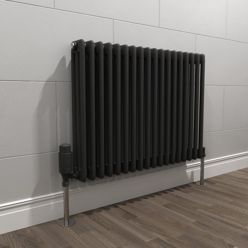 This matte black horizontal radiator (828 x 600 mm) features a bold triple column colosseum design for powerful heat output and timeless appeal. Ideal for bedrooms, kitchens, TV lounges, and living rooms, it combines classic style with modern efficiency and suits any décor