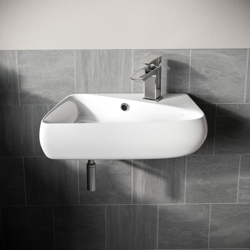 Transform your bathroom into a luxurious oasis with the addition of this stunning Rectangle White Wall Hung Basin. With its beautiful shape this basin can elevate your homes aesthetic. This sleek and compact sink is designed to maximize available space while adding a touch of modern elegance to your bathroom décor.