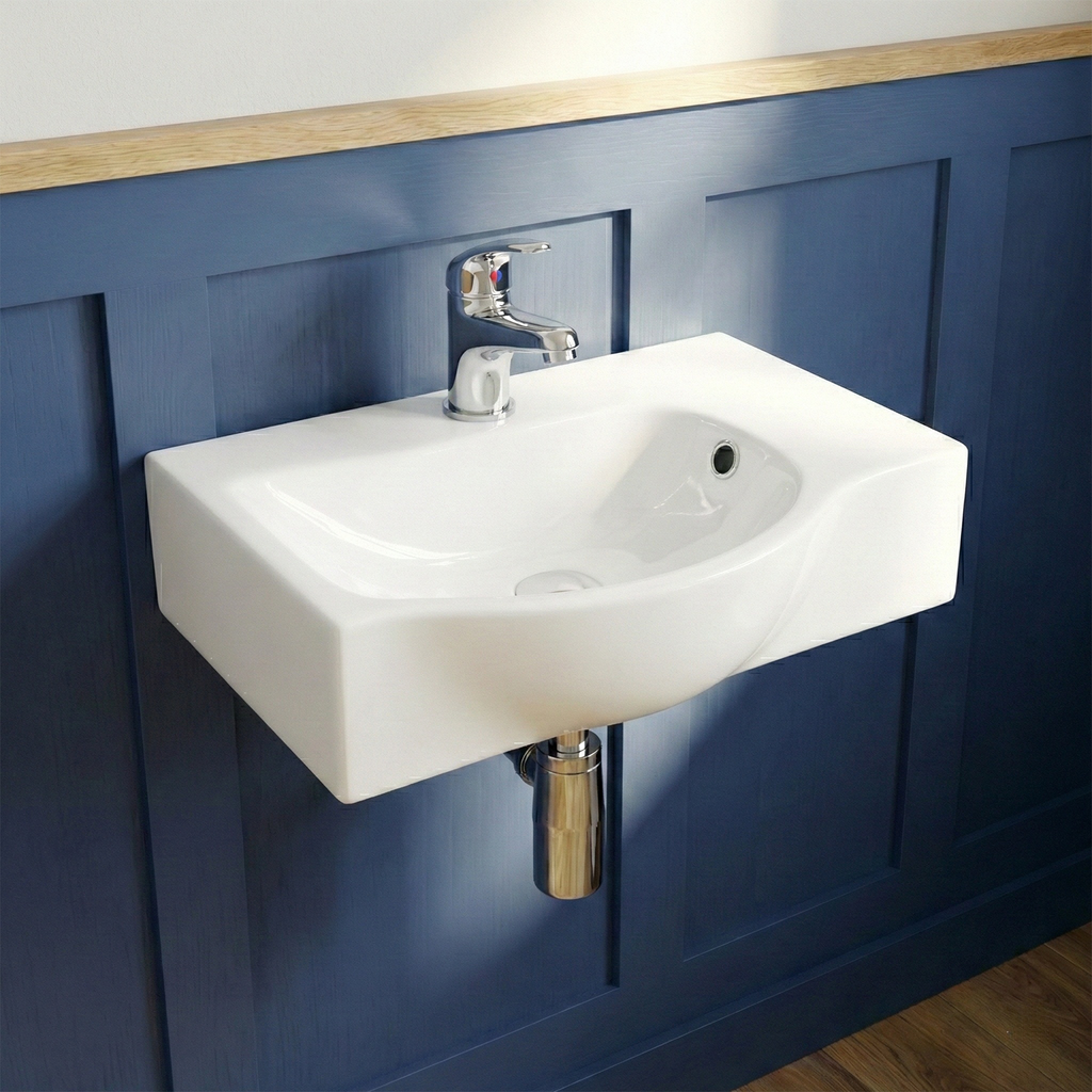 - Space-saving design ideal for cloakrooms and compact bathrooms