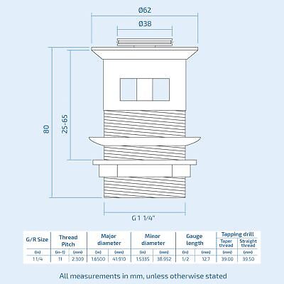 - Standard UK size: G 1¼ BSP threaded waste