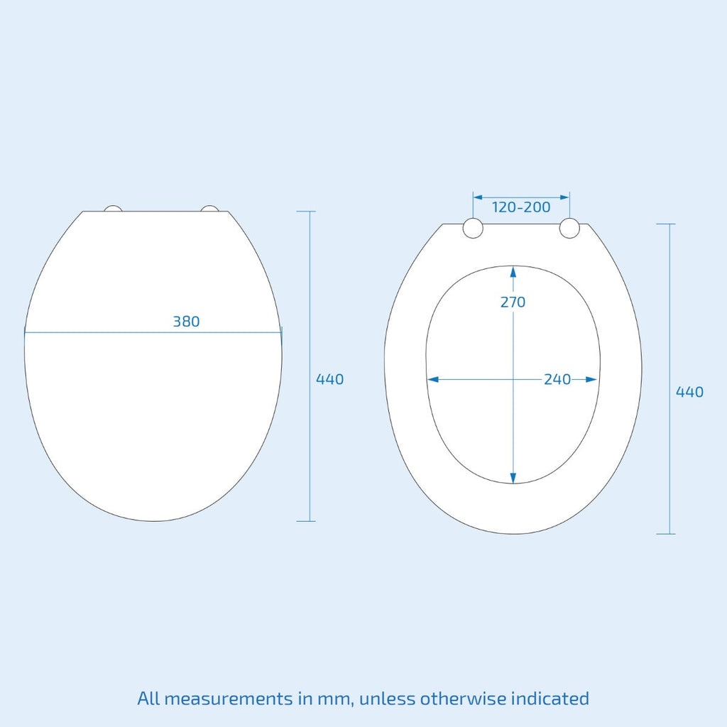 The toilet seat fits all common toilet bowls with hinges adjustable from 12 to 20 cm wide. What's more, it is simple to install and easy to clean.