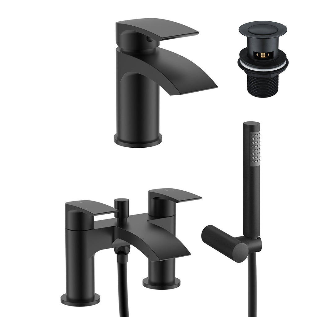 The Vago modern basin mixer and bath shower mixer black matt tap set are perfect for adding a beautiful and elegant ambience to your bathroom. Manufactured from high-quality solid brass - will not rust or corrode from water exposure which is good when using taps every day.