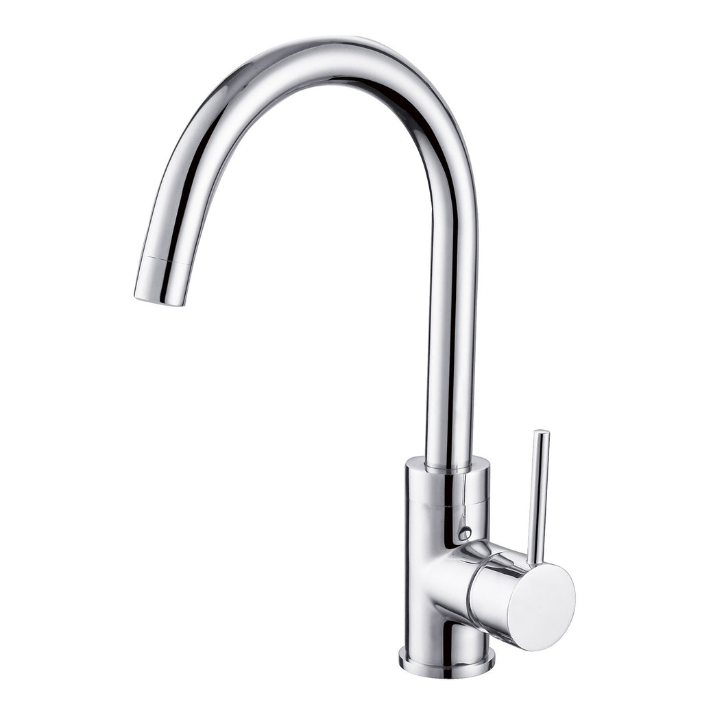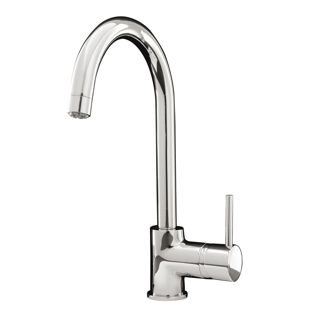 The kitchen tap has a simplistic design and would fit perfectly in almost any kitchen. It has an extremely curved spout and a modern twist of a single lever handle. It is finished in polished chrome which would match your basin in the majority of kitchens.