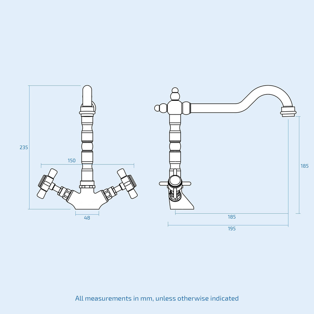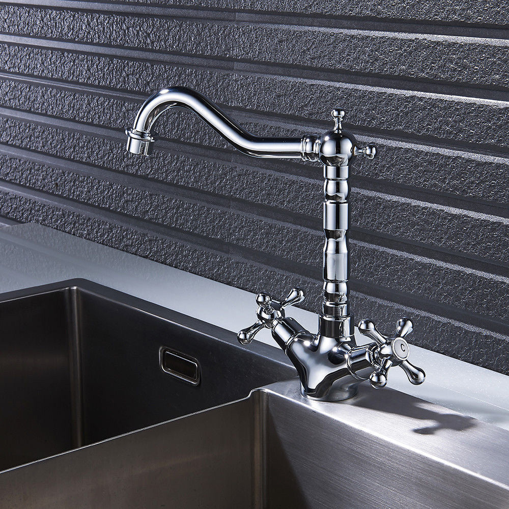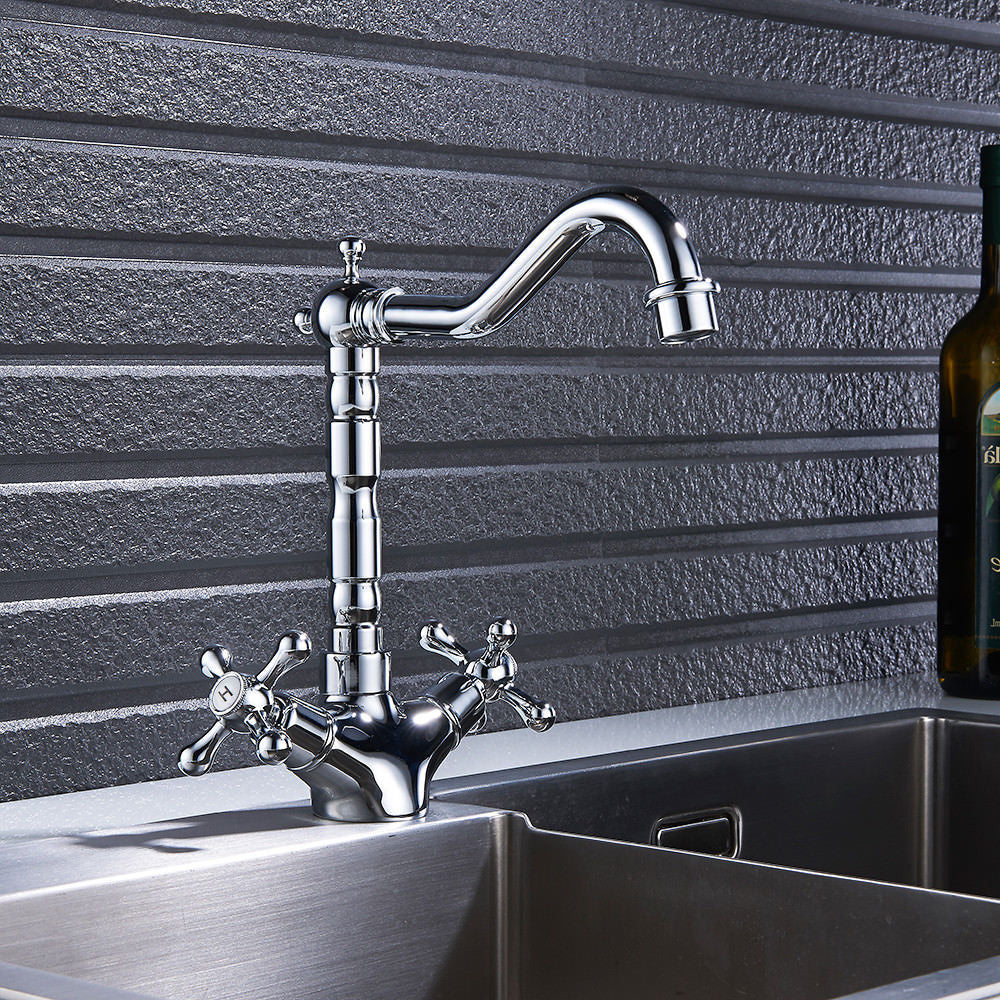 This traditional kitchen tap is elegant & beautiful adding a classic look to your kitchen. Featuring chrome cross designed handles and a 360 degrees swivel spout, with a highly reflective chrome finish which is perfect for a twin bowl basin.