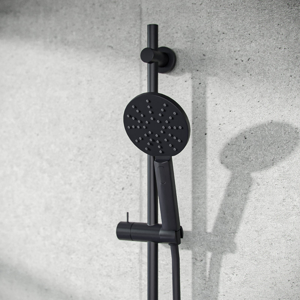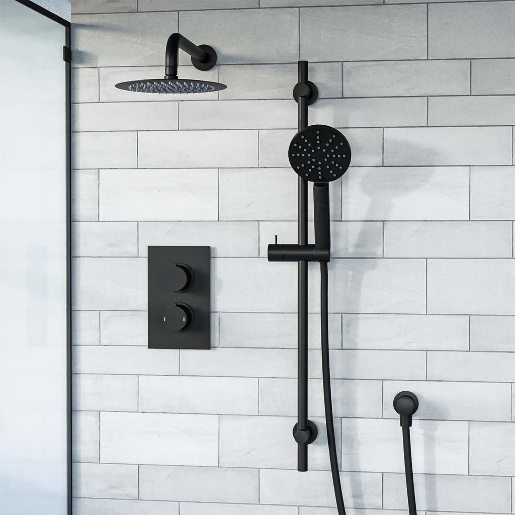 This stunning matt black slim round concealed thermostatic mixer valve shower set is a perfect addition to any modern designer bathroom.