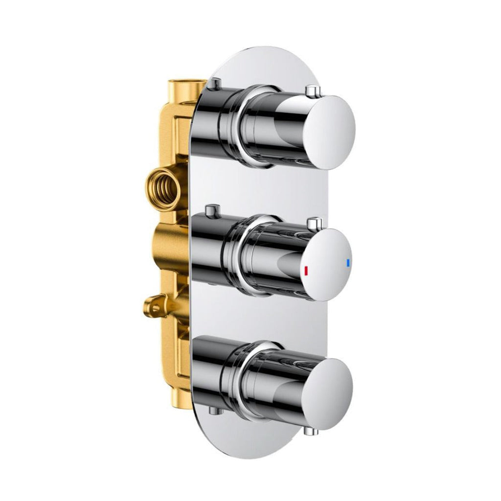 Constructed from solid brass, with modern ceramic disc technology, our stylish concealed thermostatic shower mixer valve is perfect for creating a new minimalist look to your bathroom.