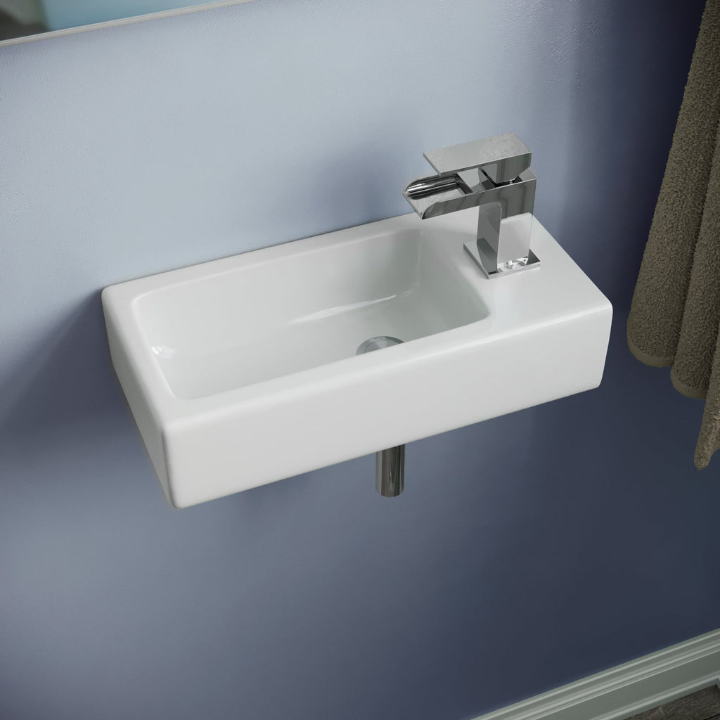 Transform your bathroom into a luxurious oasis with the addition of this stunning Rectangle White Wall Hung Basin. With its beautiful shape this basin can elevate your homes aesthetic. This sleek and compact sink is designed to maximize available space while adding a touch of modern elegance to your bathroom décor.