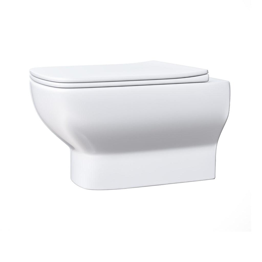The Modern Square Rimless Wall Hung Toilet Pan with Soft Close Toilet Seat in White offers a stylish and hygienic solution for your bathroom. The square design adds a contemporary touch, while the rimless feature ensures effortless cleaning and enhanced cleanliness. The soft-close toilet seat prevents loud slamming, adding convenience and a touch of luxury. This sleek and modern toilet pan in a crisp white finish is a perfect addition to elevate the aesthetic of your bathroom space.