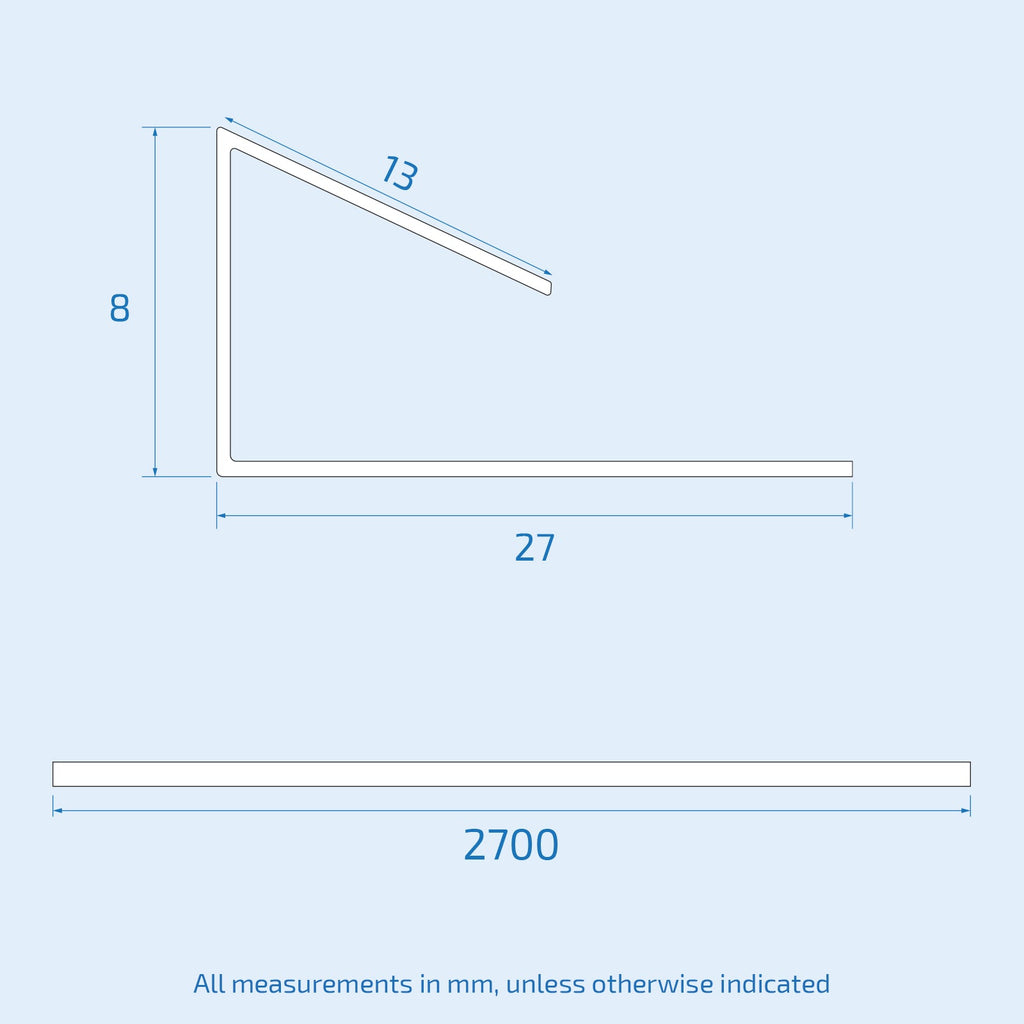 The Chrome starter/end trim is an efficient way to cover any open-ended cladding edges, for example, a shower area or half-clad room where the edges of the cladding are exposed.