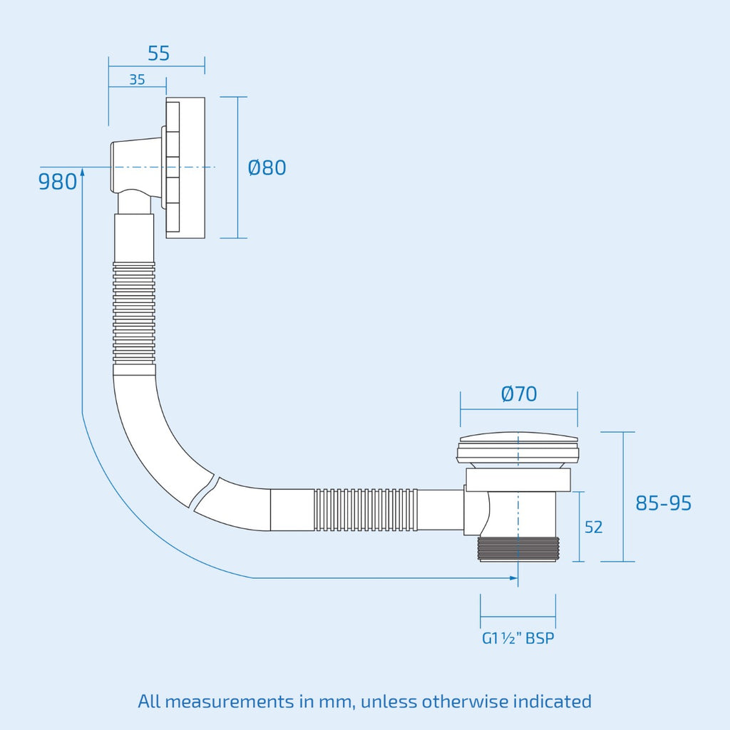 - Fits all standard UK Specification 1 1/2 inch x 12mm threaded connections bath plumbing
