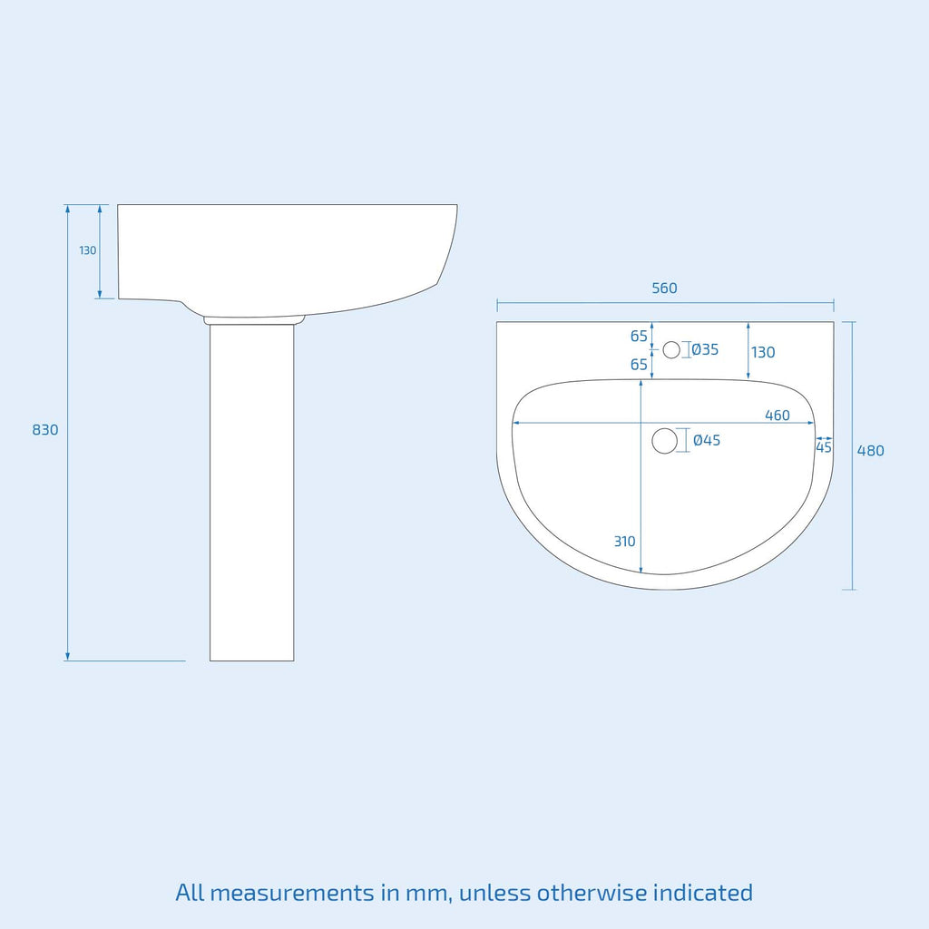 Made from high-quality materials, making it durable and long-lasting. The pedestal basin comes with 1 tap hole to pair with our large selection of basin mixer tap.