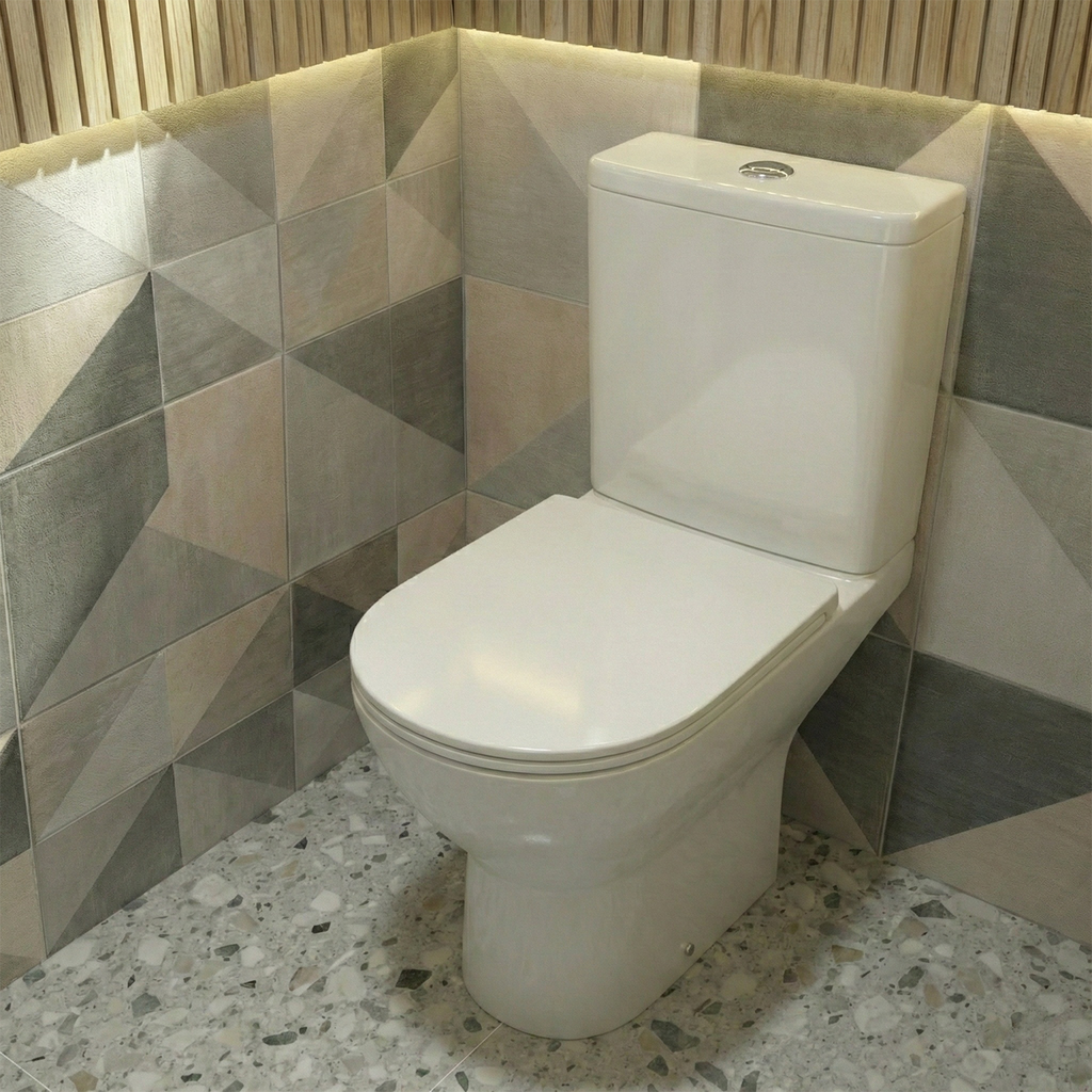 The perfect combination of style, space-saving design, and everyday practicality for small bathrooms and cloakrooms. This bundle pairs the contemporary Theo rimless close-coupled toilet, with soft-close seat and dual flush system, with the sleek white modern rectangle square wall hung ceramic basin, and a modern mono single lever chrome mixer tap for a coordinated and functional solution. Each component is engineered for modern interiors, offering effortless hygiene, comfortable use, and streamlined aesthetics, all in a set that enhances compact bathroom spaces.