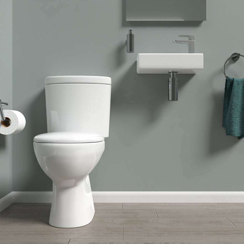 Also, our stunning small cloakroom close-coupled toilet comes complete with a dual flush cistern which makes it safe for people of all ages to use and helps prevent fingers from getting trapped.