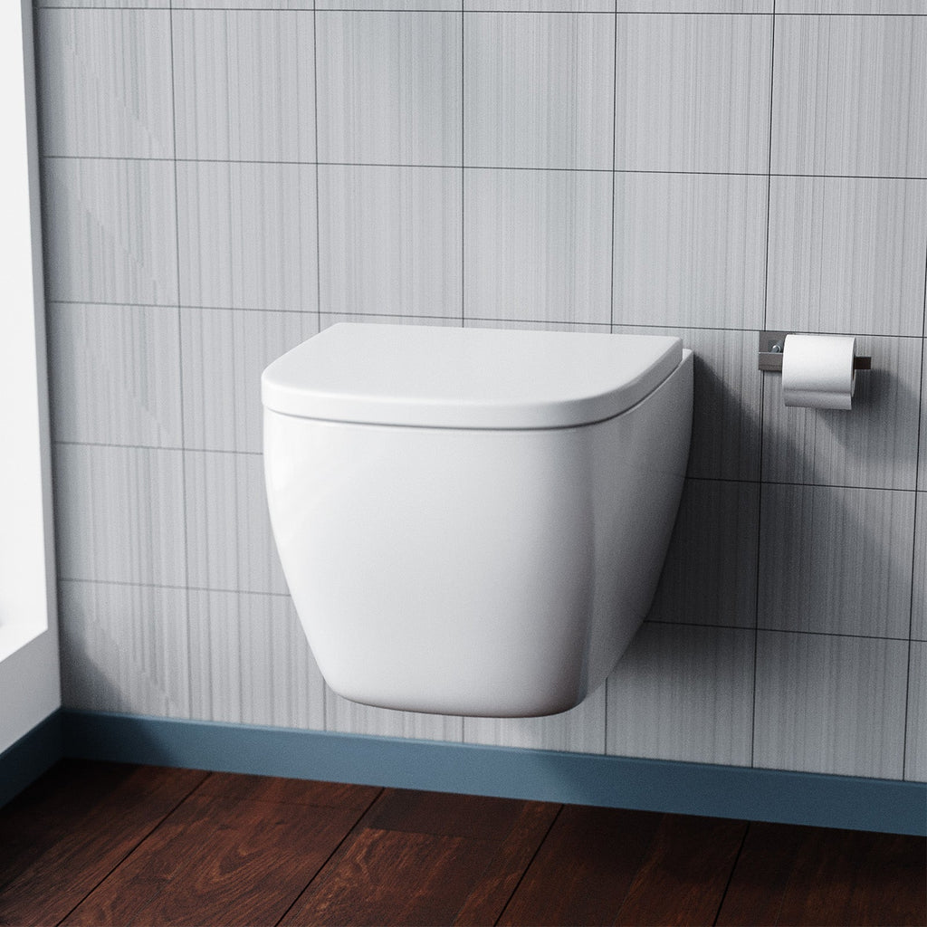 The Modern Square Rimless Wall Hung Toilet Pan with Soft Close Toilet Seat in White offers a stylish and hygienic solution for your bathroom. The square design adds a contemporary touch, while the rimless feature ensures effortless cleaning and enhanced cleanliness. The soft-close toilet seat prevents loud slamming, adding convenience and a touch of luxury. This sleek and modern toilet pan in a crisp white finish is a perfect addition to elevate the aesthetic of your bathroom space.